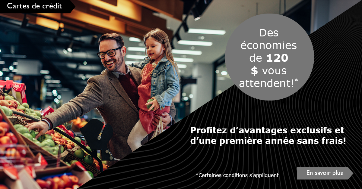 Demandez une carte de crédit haut de gamme pendant la période de l’offre et obtenez une remise de 120 $ sur les frais annuels la première année pour les cartes personnelles et de 130 $ sur les cartes d’entreprise.