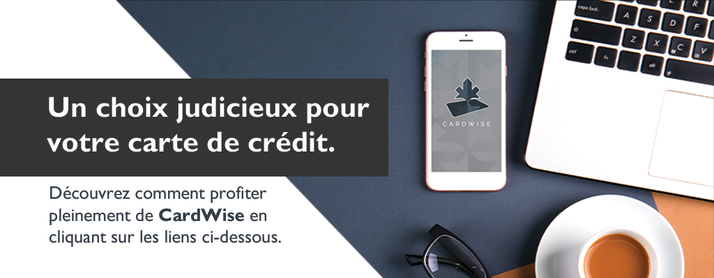CardWise est l'outil de gestion de compte numérique qui vous permet de gérer votre carte de crédit émise par Collabria à tout moment, n'importe où. Si vous êtes titulaire d'une carte personnelle ou d'une carte d'entreprise sur une structure de paiement individuelle, vous pouvez vous inscrire à CardWise et profiter de toutes ses fonctionnalités et de tous ses avantages sur cardwiseonline.ça ou sur l'application CardWise Mobile. Si vous êtes titulaire d'une carte d'entreprise Structure de paye consolidée, veuillez cliquer ici pour découvrir les solutions numériques de gestion de compte dont vous pouvez bénéficier.