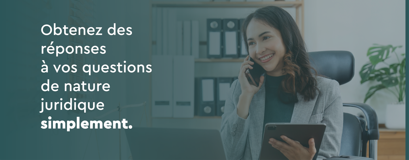Que vous soyez confronté à des réglementations complexes ou des litiges, nous sommes là pour vous fournir l’information juridique professionnelle et rapidement, vous permettant ainsi de vous concentrer sur ce que vous faites de mieux : développer votre entreprise.